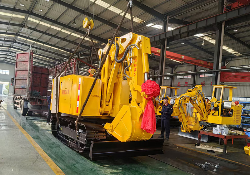 2024年11月4日,由山东东达机电重工机械设备生产车间自主研发生产的防爆柴油机挖掘机装车发货。